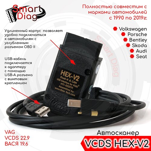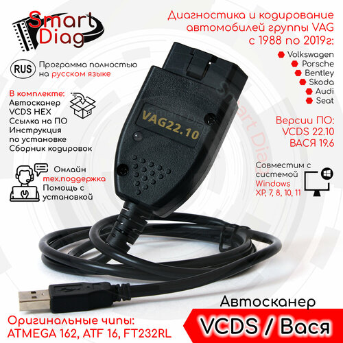 Автосканер VCDS для VAG 22.9/22.3.1 RUS, VAG COM, Вася 19.6 (Audi, Volkswagen, Skoda 1990-2019 год) Версия 2.0 PRO + ПО, сборник кодировок