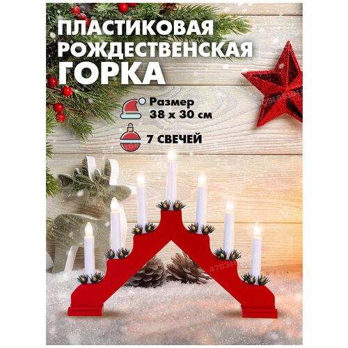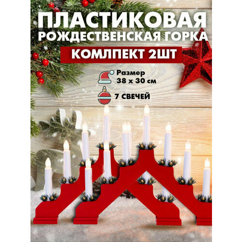 Горка рождественская новогодняя 7 свечей комплект 2 шт, семисвечник На новый год пластик красный
