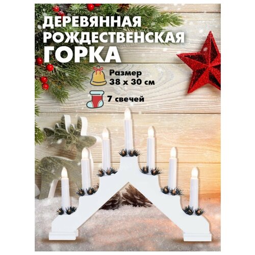 Горка рождественская новогодняя 7 свечей, семисвечник, дерево белый