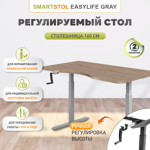 Регулируемый стол EasyLife Gray с ручным приводом, Smartstool, цвет столешницы Дуб Корбридж 160