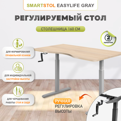 Регулируемый стол EasyLife Gray с ручным приводом, Smartstool, цвет столешницы Акация 160