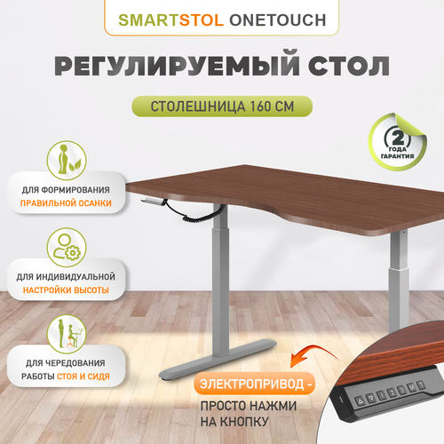 Регулируемый стол Smartstol OneTouch с электроприводом, столешница Орех Линкольн 160