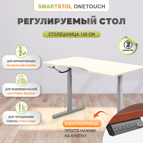 Регулируемый стол Smartstol OneTouch с электроприводом, столешница Акация 160