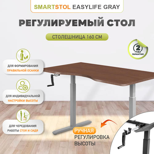 Регулируемый стол EasyLife Gray с ручным приводом, Smartstool, цвет столешницы Орех Линкольн 160