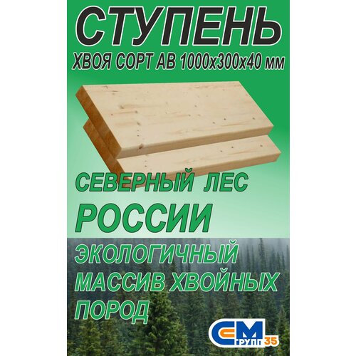 Ступень 1000х300х40 мм прямая деревянная для лестницы, хвоя, 1 шт
