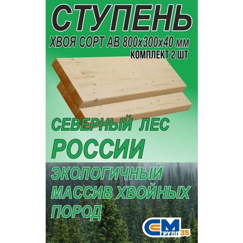 Ступень 800х300х40 мм прямая деревянная для лестницы, хвоя, 2 шт