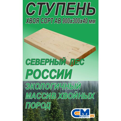 Ступень 900х300х40 мм прямая деревянная для лестницы, хвоя, 1 шт