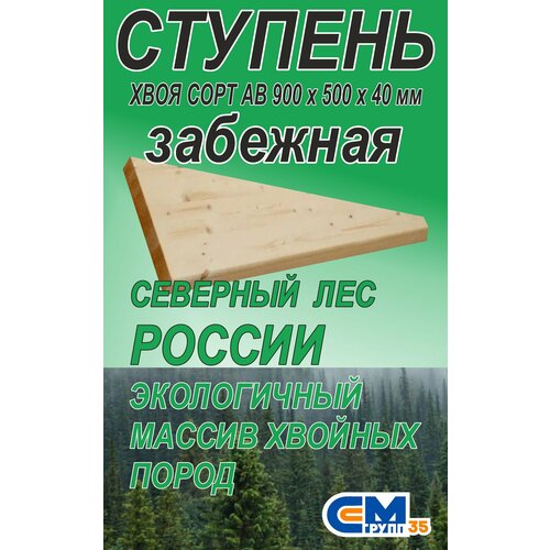Ступень для лестницы деревянная 900х500х40 мм забежная, хвоя