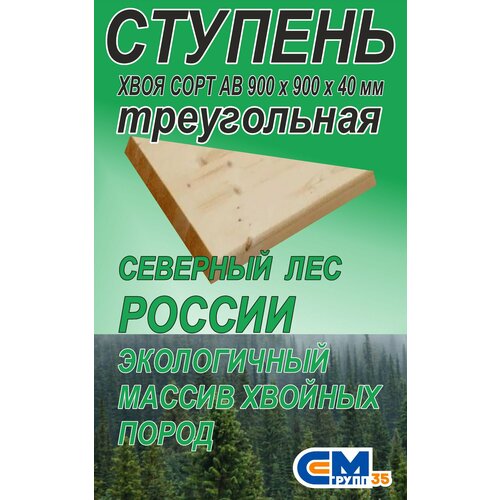 Ступень для лестницы деревянная 900х900х40 мм треугольная, хвоя