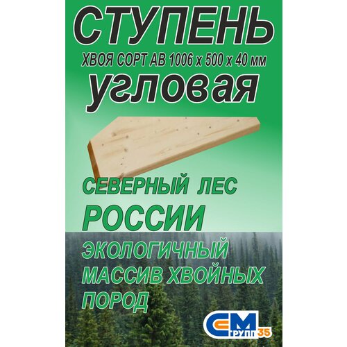 Ступень для лестницы деревянная 1006х500х40 мм угловая, хвоя