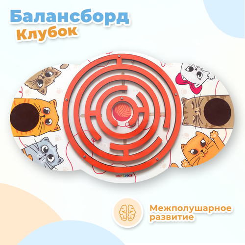Деревянный детский балансир Smile Decor "Клубок" с лабиринтом, балансборд для детей, доска-нейротренажер для ног