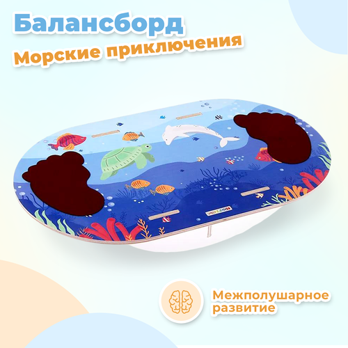 Деревянный детский балансир Smile Decor "Морские приключения", балансборд, нейротренажер для ног, балансирующая доска для детей