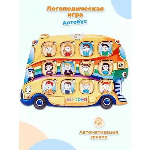 Логопедическое пособие Smile Decor "Логопедический городок. Автобус", деревянная рамка-вкладыш, развивающая настольная игра, автоматизация звуков для детей SmileDecor