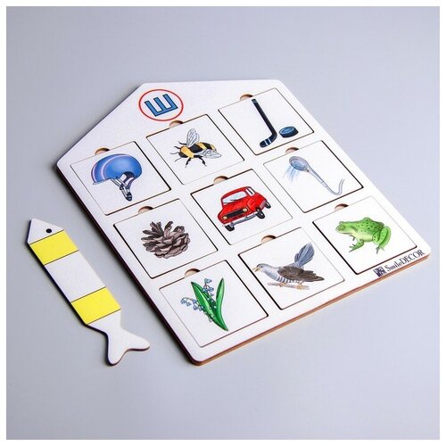 Логопедическое пособие Smile Decor "Логопедический городок. Домик", деревянная рамка-вкладыш, развивающая настольная игра, автоматизация звуков для детей SmileDecor