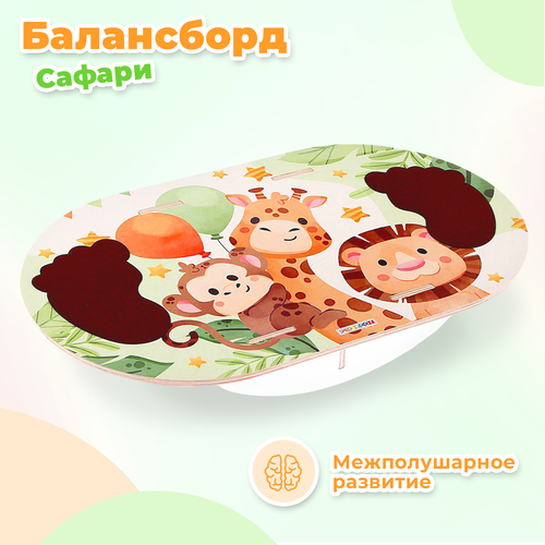 Деревянный детский балансир Smile Decor "Сафари", балансборд, нейротренажер для ног, балансирующая доска для детей