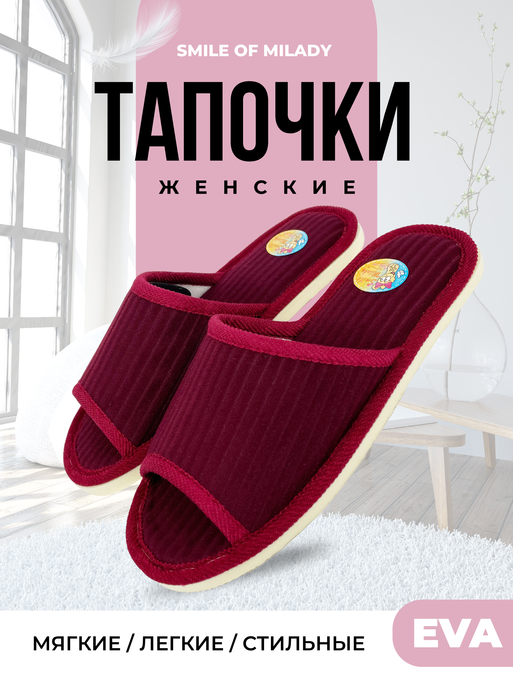 Тапочки женские Smile of Milady А-70 В22-126 бордовые 36-37 RU
