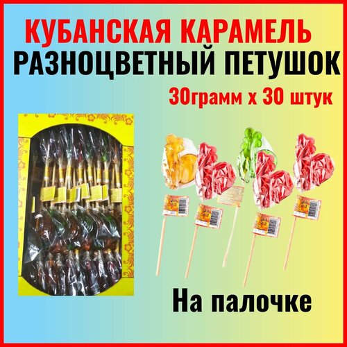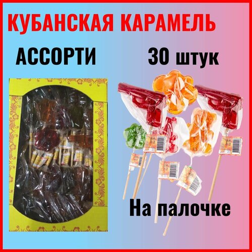 Карамель леденцовая на палочке Кубанский Леденец "Ассорти" 30 шт по 30г