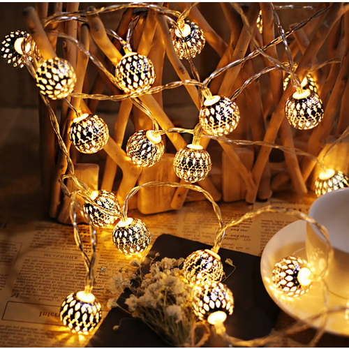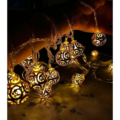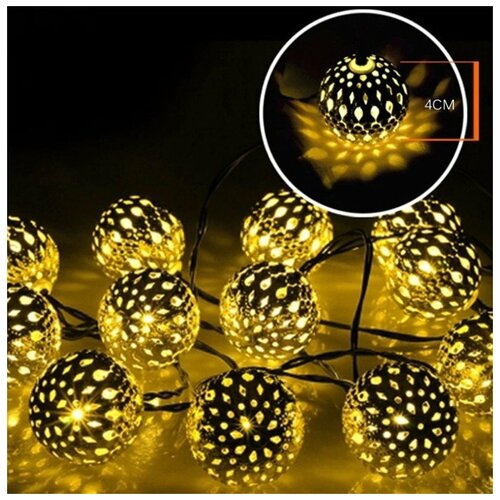 Снежок Гирлянда Марокканские шары 4 метра золотые, 40LED
