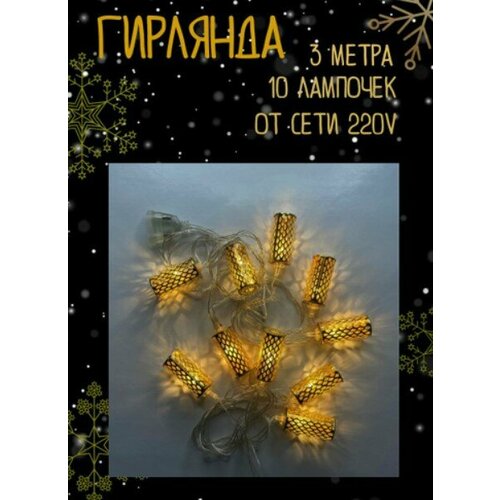 Снежок Гирлянда "Снежок" шары Марокканские 3 метра золотые, 20LED