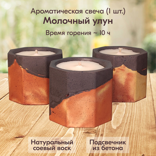 Свеча ароматическая "Молочный улун" из соевого воска в подсвечнике из бетона 4,7 х 5,5 см