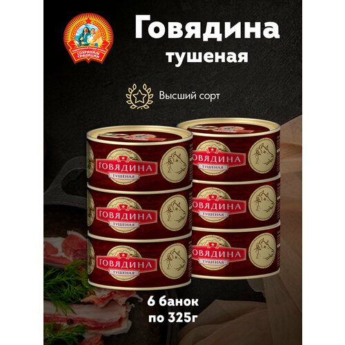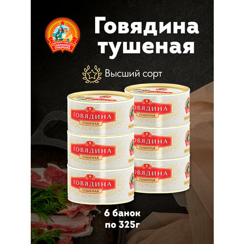 Говядина тушеная "Сохраним традиции" КТК, высший сорт ГОСТ Премиум, 6 шт. по 325 г