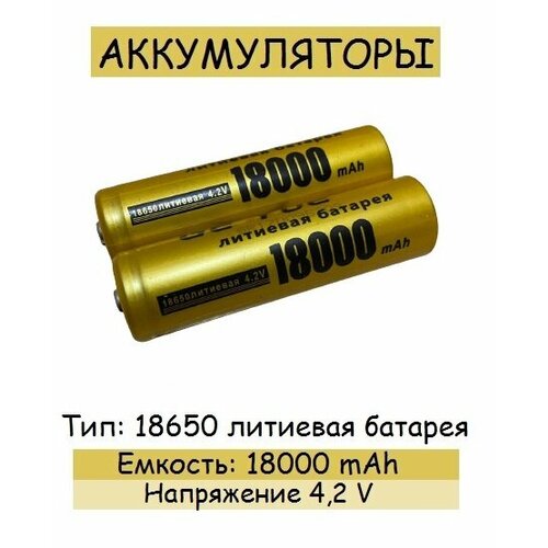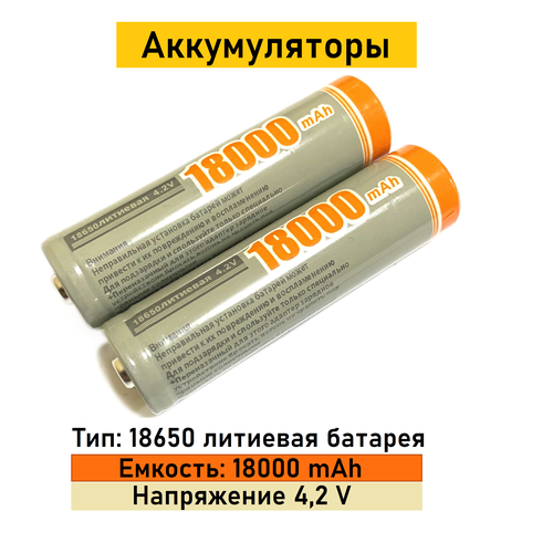 Аккумуляторы тип 18650 литиевая батарея, ёмкостью 18 000 mAh, 2 шт.