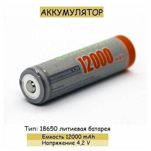 Аккумулятор, тип 18650 литиевая батарея, ёмкость 12 000 mAh.