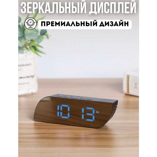 Часы будильник электронные настольные, зеркальные / Часы цифровые настольные / Будильник электронный настольный / синие цифры