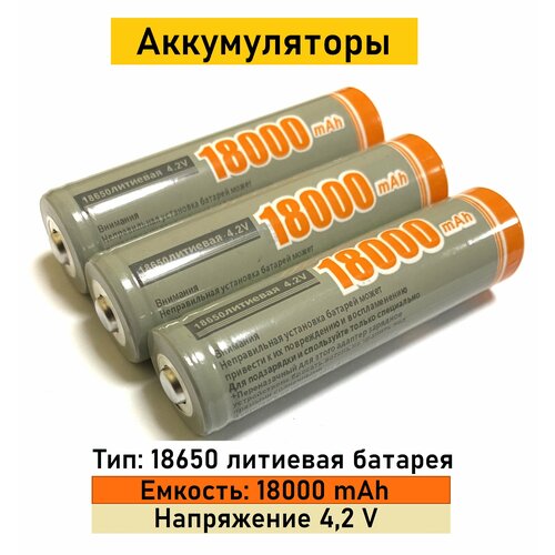 Аккумуляторы, тип 18650 литиевая батарея, ёмкостью 18 000 mAh, 3 шт.