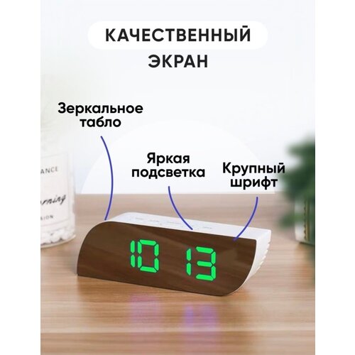 Часы будильник электронные настольные, зеркальные / Часы цифровые настольные / Будильник электронные настольные / цифры зеленые