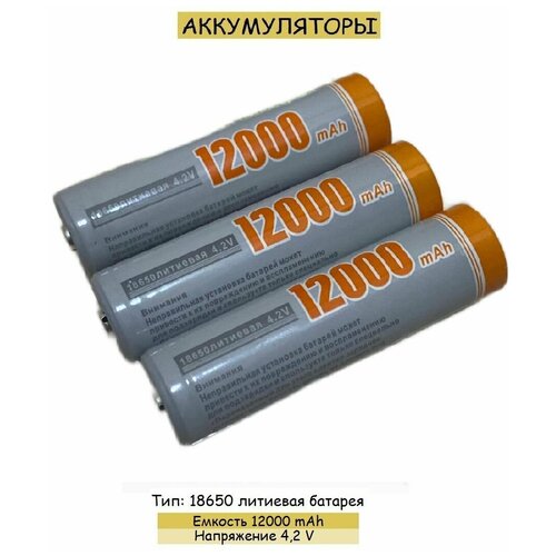 Аккумуляторы, тип 18650 литиевая батарея, ёмкостью 12 000 mAh, 3 шт.