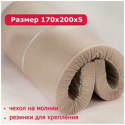 Матрас беспружинный Топпер Холкон 170*200 высота 5 см с резинками по углам и съёмным чехол на молнии Соня