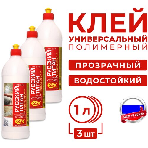 Клей универсальный, полимерный, Русский Титан, клей строительный для различных материалов, 3000мл