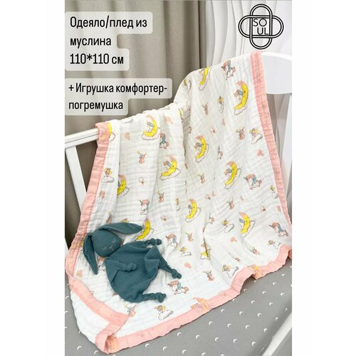 Одеяло муслиновое (6-ти слойное) + игрушка-комфортер для малыша (набор)