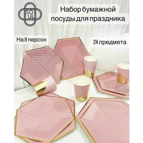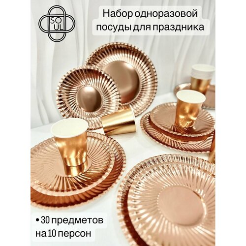 Набор одноразовой посуды для праздника "Розовое золото"