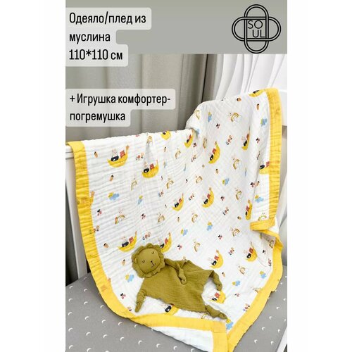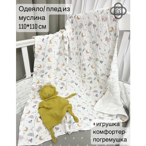 Одеяло муслиновое (6-ти слойное) + игрушка-комфортер "Лев"