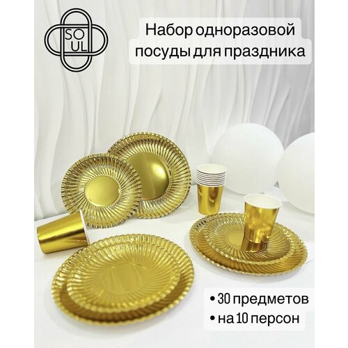 Набор одноразовой посуды для праздника "Лимонное золото"