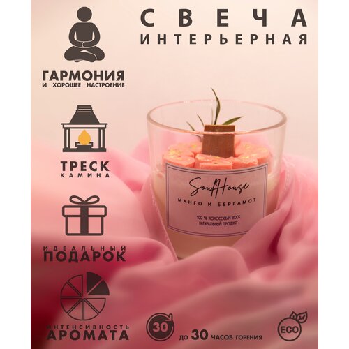 Интерьерная свеча. Аромасвеча. Манго и Бергамот