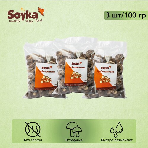 Грибы Шиитаки натуральные сушеные Сойка 3 шт по 100 г / 100% натуральный продукт