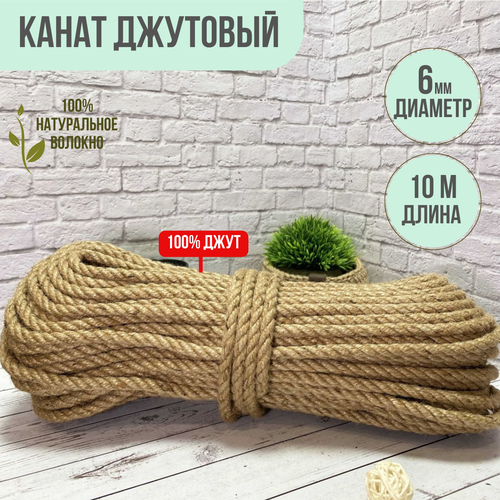 Канат джутовый шлифованный, высший сорт 6 мм 10 метров. Джут