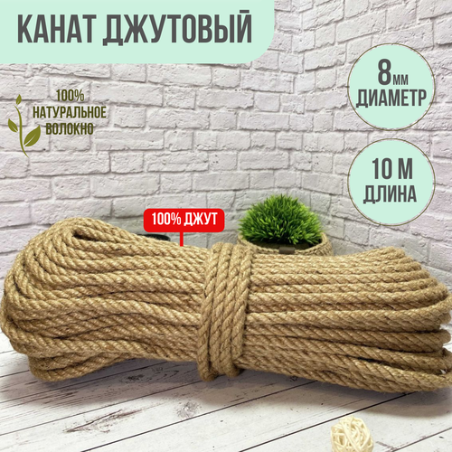 Канат джутовый шлифованный, высший сорт 8 мм 10 метров. Джут
