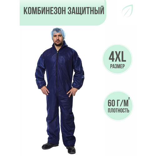 Защитный комбинезон (костюм) одноразовый с капюшоном "Каспер", плотность спанбонда 60 г/м2, размер 4XL (60 - 62)