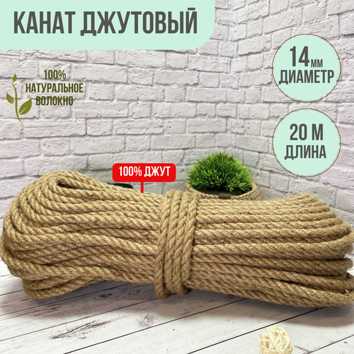 Канат джутовый шлифованный, высший сорт 14 мм 20 метров. Джут