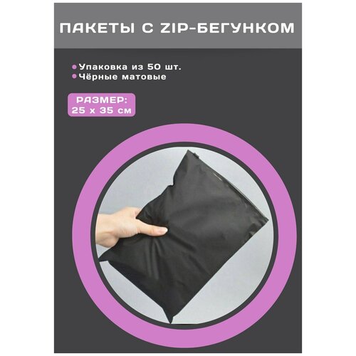 Zip lock пакет с застежкой / бегунком / слайдером, 25х35 см, 110 мкм, матовый черный, с отверстием, 50 шт