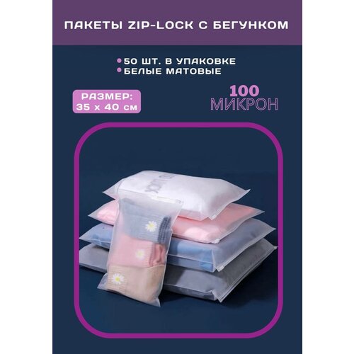 Zip Lock пакет с бегунком / слайдером, 35х45 см, 100 мкм, матовый белый, с отверстием, 50 шт