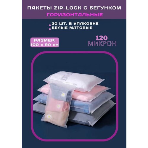 Zip Lock пакет с бегунком / слайдером, 100х90 см, 120 мкм, матовый белый, с отверстием, 20 шт