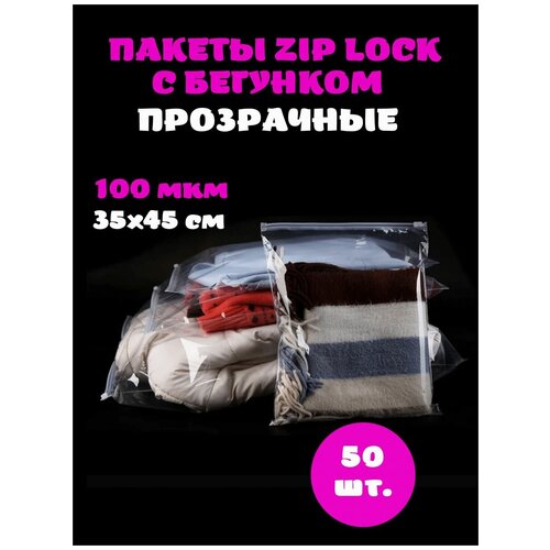 Зип лок пакет с застежкой / бегунком / слайдером, 35х45 см, 100 мкм, прозрачный, с отверстием, 50 шт
