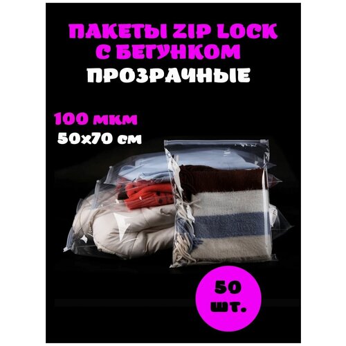Зип лок пакет с застежкой / бегунком / слайдером, 50х70 см, 100 мкм, прозрачный, с отверстием, 50 шт