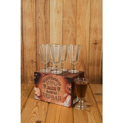 Подарочный набор "Рюмка 55 мл - 6 штук. Поздно выпитая вторая — зря выпитая первая"