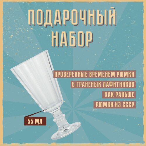 Подарочный набор "Рюмка 55 мл - 6 штук. Благородные напитки" (Стопки, лафитники граненые)